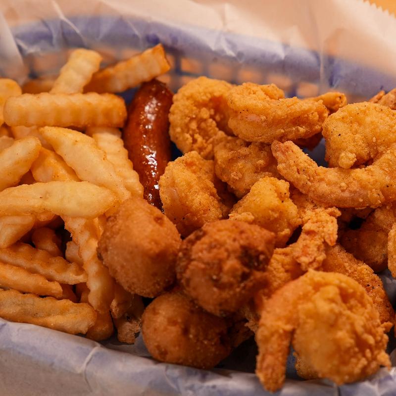Includes French Fries, Cole Slaw, Hushpuppies